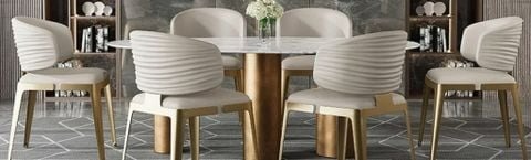Bộ Bàn Ăn Mặt Đá Agnes + Ghế Aurora - Sự Kết Hợp Hoàn Hảo Cho Không Gian Sống Hiện Đại