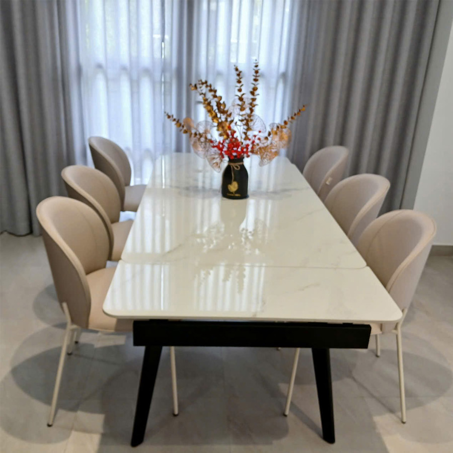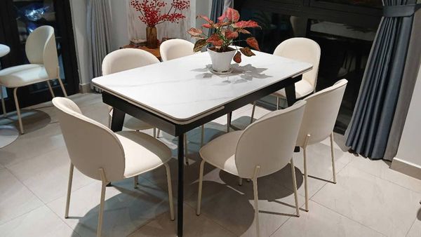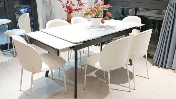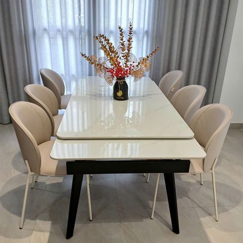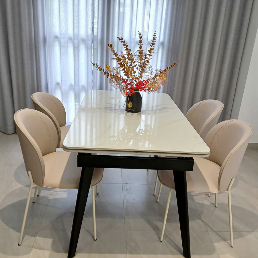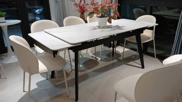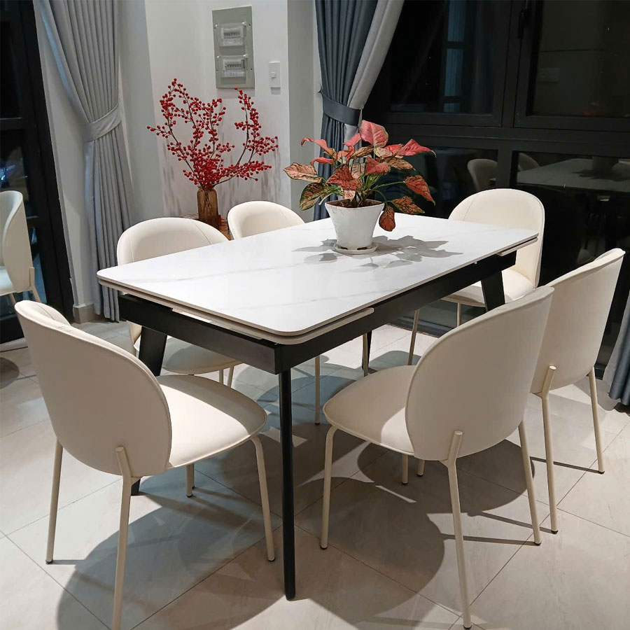 Chất liệu bàn: Mặt bàn đá Ceramic, chân sắt sơn tĩnh điện