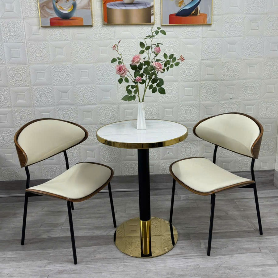 Dễ dàng bảo trì và vệ sinh: Chất liệu đá gốm và bọc da công nghiệp dễ dàng làm sạch, giữ cho bàn và ghế luôn đẹp như mới.